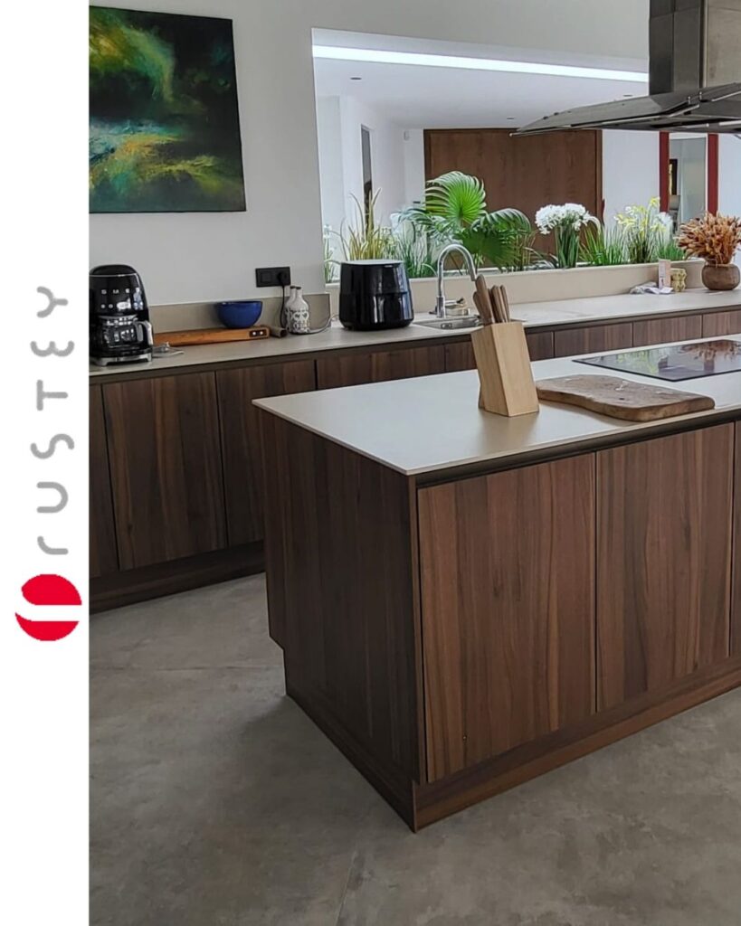 Uno de los aspectos más destacados de este proyecto es la combinación de la encimera de cocina Dekton Danae de Consentino con mobiliario de madera. El contraste entre la textura suave del mostrador y la madera natural aporta profundidad, calidez y una sensación de espacio acogedor.