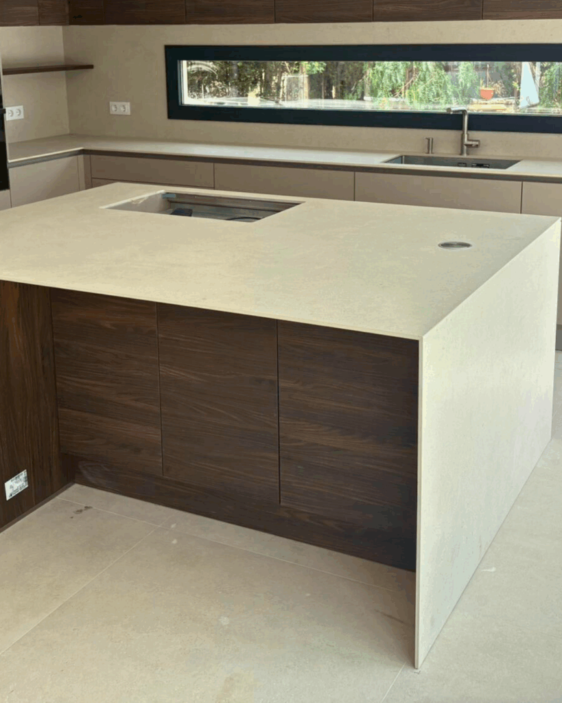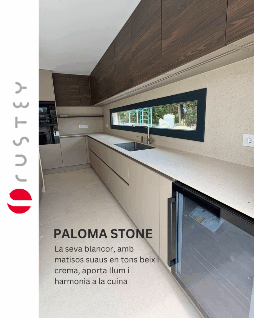 En Marbres Rustey hemos trabajado recientemente con la Paloma Stone Linen en una cocina de Girona que ejemplifica su potencial.